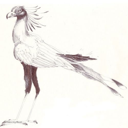 Excellent marcheur, le serpentaire peut parcourir près de 25 km par jour dans la savane pour se nourrir. Il frappe ses proies d'un seul coup de pattes. Quand il attaque les serpents, il se sert de ses ailes comme d'un bouclier. source: Wikipedia |